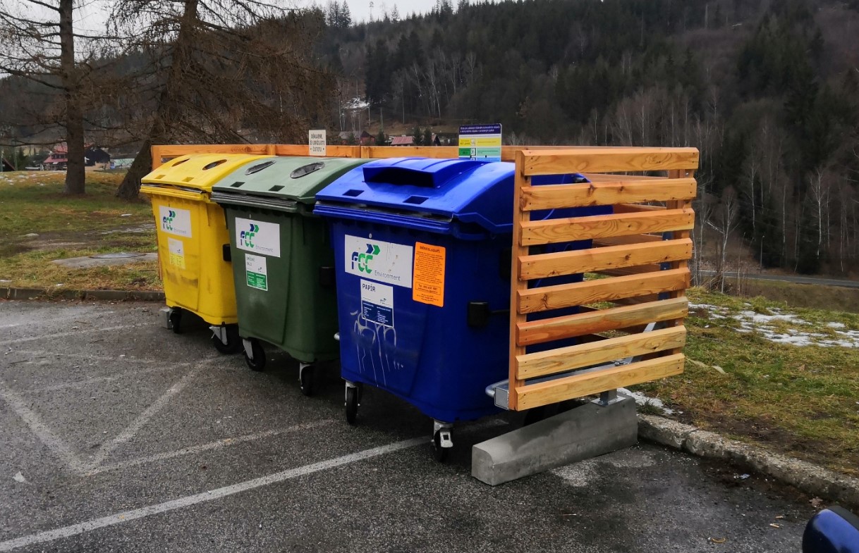 V dohledné době vznikne v obci pět kontejnerových míst. Je již objednáno 20 kontejnerů na plast, papír, sklo, plechovky a tuky, které se hned po dodání rozmístí po obci. Budou tedy hned k dispozici, aby bylo možné separovaný odpad odložit, a tím snížit množství odpadu směsného ve vlastních popelnicích, pro bezproblémové zvládnutí 14-ti denního svozu. Následně kolem kontejnerů vzniknou pojezdové zábrany a zástěny viz foto.