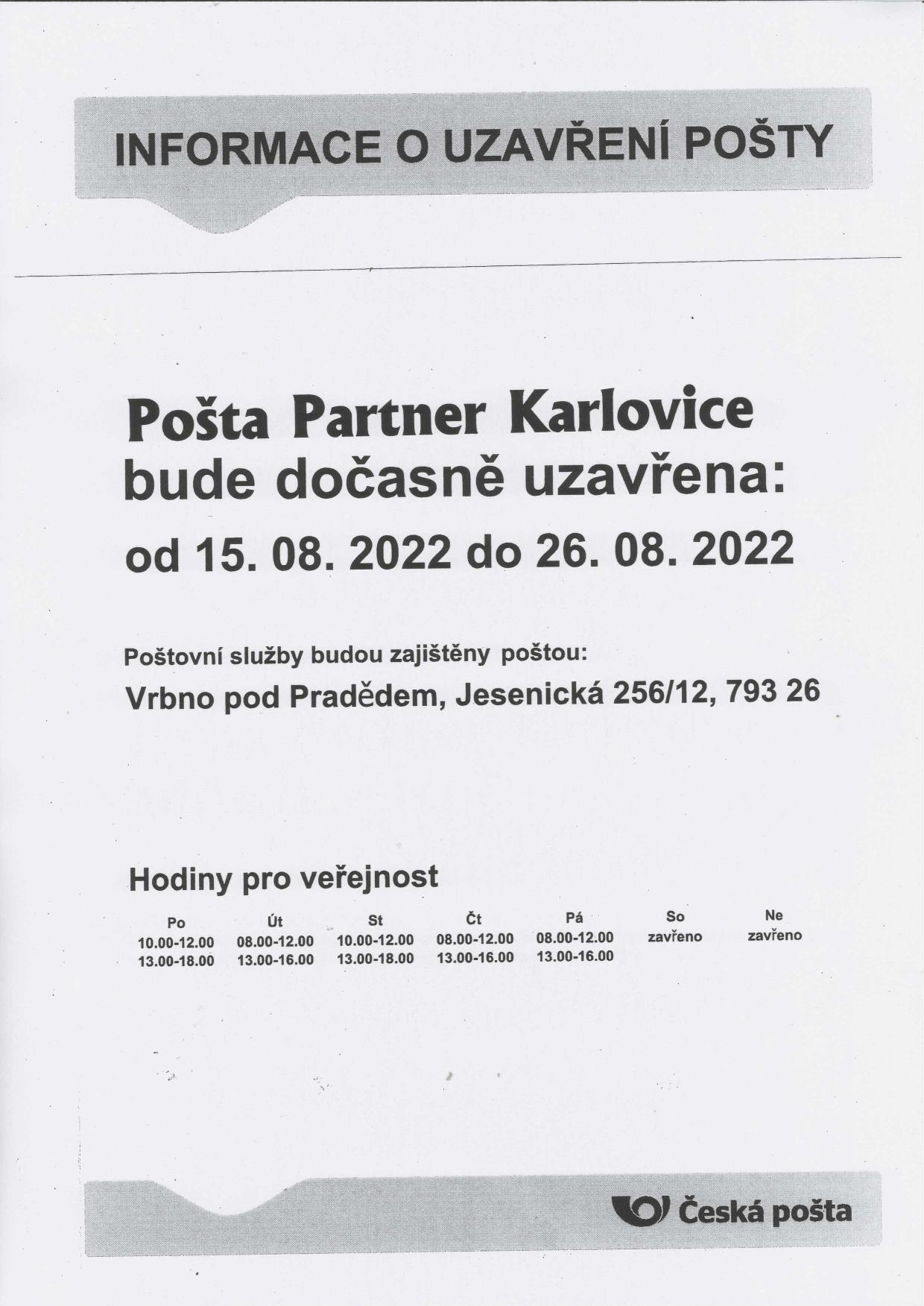 Jste zde: Úvod / Novinky / Informace o uzavření pošty
