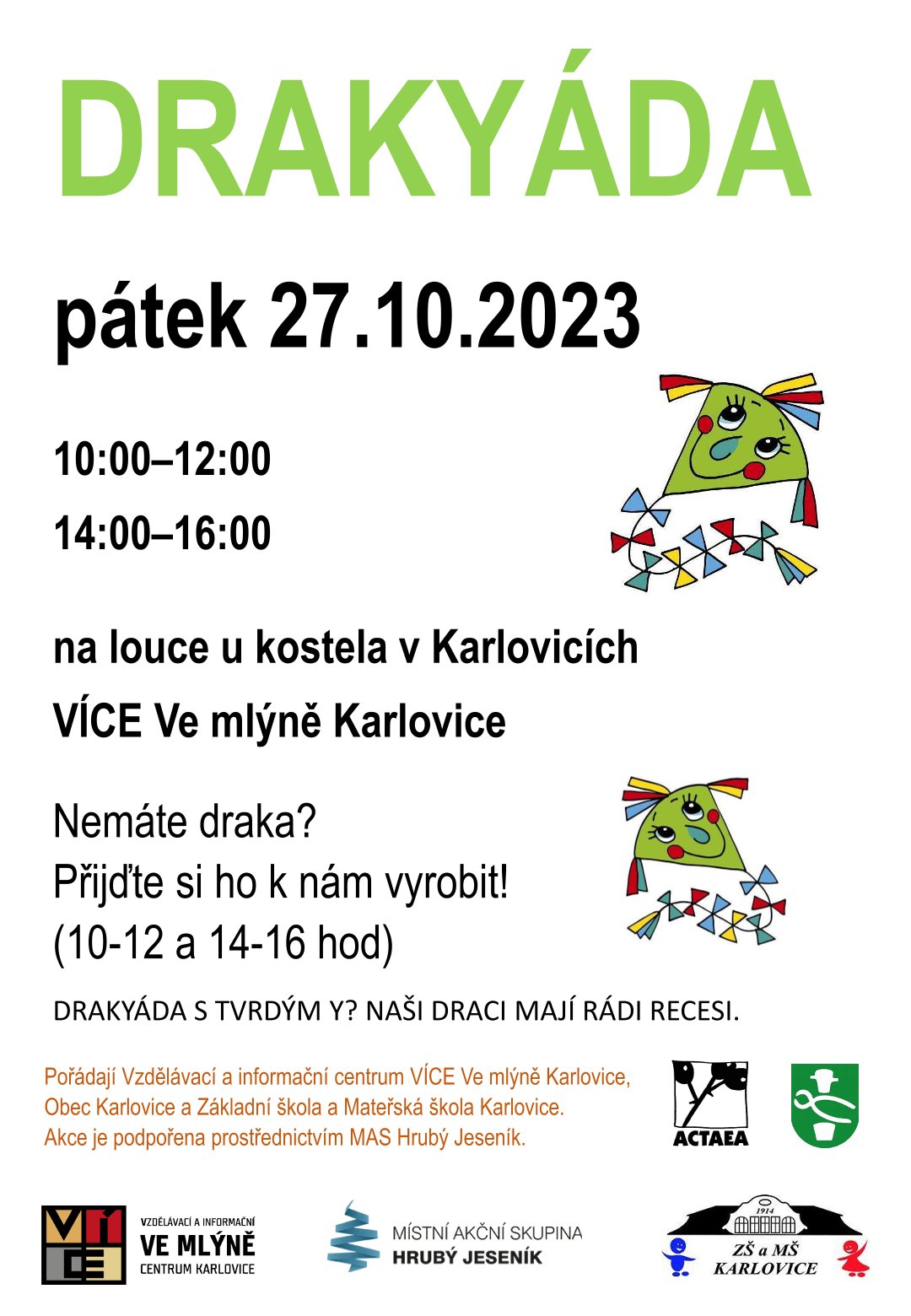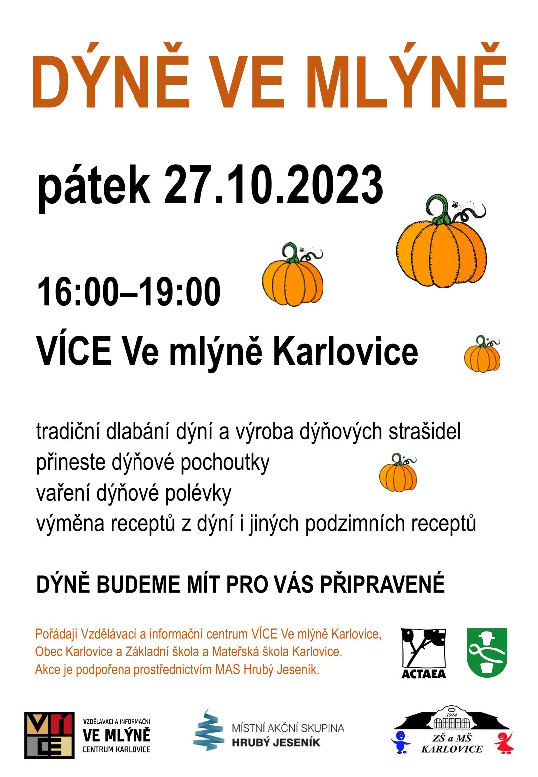 Vzdělávací centrum VÍCE Ve mlýně vás srdečně zve v pátek 27. října 2023 od 14:00 do 18:00 hodin na Drakyádu a dýňování. Od 19 hodin se můžete těšit na hudební večer, zahraje Javorový škrpál.