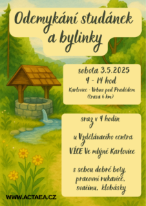 Sraz v sobotu 3. 5. 2025 v 9 hodin u Vzdělávacího centra VÍCE Ve mlýně Karlovice. Trasa: Karlovice – Vrbno pod Pradědem (6 km). S sebou dobré boty, pracovní rukavice, svačinu, klobásky.
