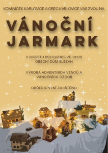 Kominíček Karlovice a Obec Karlovice vás zvou na Vánoční jarmark.