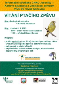 Sraz ve čtvrtek 8. 5. 2025 v 8 hodin v horní části Geologické expozice v Karlově Studánce.